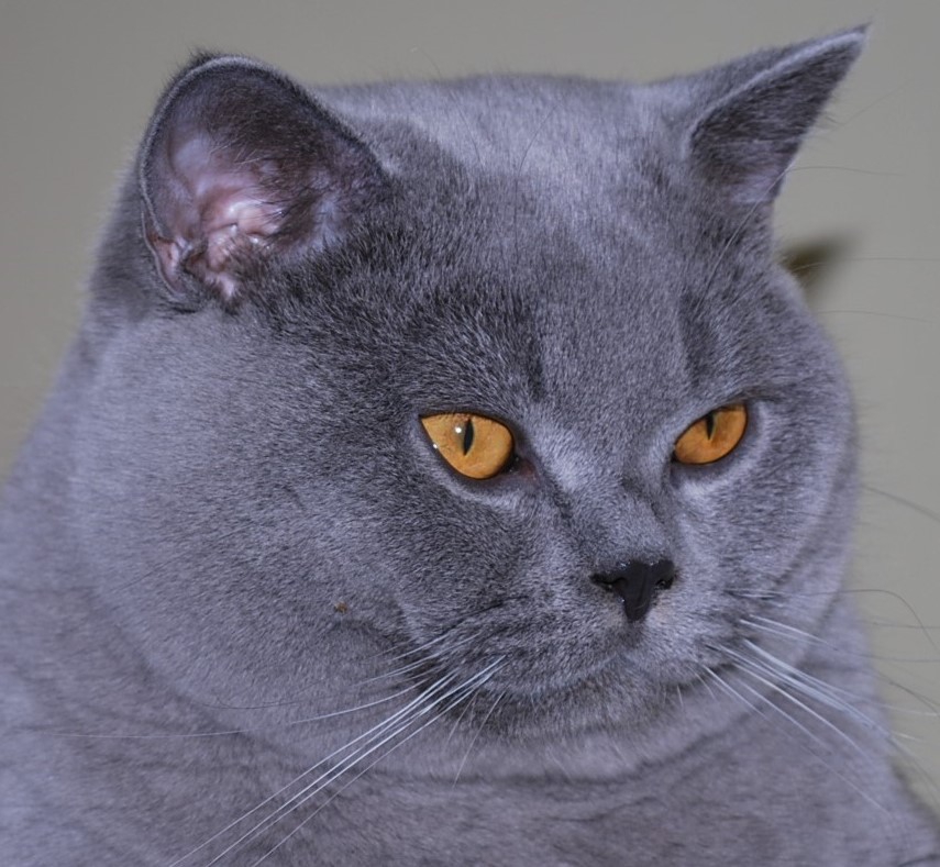 Kocurek NEFRYT wyrósł na pięknego przedstawiciela rasy kotów brytyjskich. Jest doskonale zbudowany, piękna głowa, małe uszy, piękne bursztynowe oczy, krótkie gęste futro "crispy" o jasnym odcieniu, pięknie ofutrzony gruby ogon. Otrzymał najlepsze cechy po swoich rodzicach, które przekazuje swoim potomkom. Jego dwie córki z miotu "P" są również doskonałe w typie rasy.